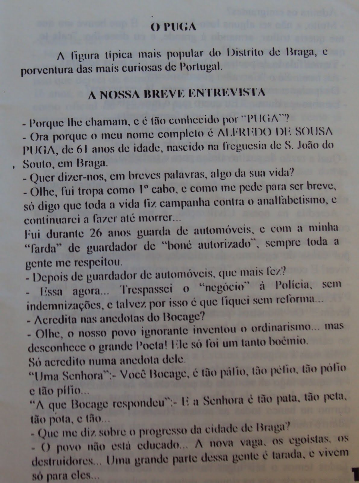 Puga, Alfredo. O mendigo, "poeta" mais famoso de Braga. Visto por João do Mar. Parte I
